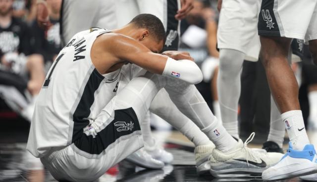 马刺和开拓者的系列赛第二战。第二节比赛进行到中段时,马刺球星文班亚马摔到头部,进入脑震荡保护程序,提前退出了比赛。