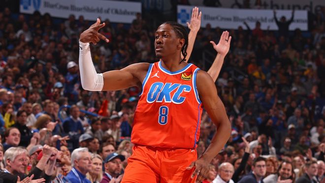 虽说大比分已经来到了2-0,这轮系列赛雷霆队晋级的希望已经非常大了,但杰伦-威廉姆斯突如其来的受伤,或许会成为雷霆队卫冕道路上最大的“阻碍”和“麻烦”。要知道,杰伦可是这支雷霆队的二当家,是球队的第二得分手,而且今年季后赛里他的表现也是十分出色,第一场打了29分钟拿到22分7篮板6次助攻的全面数据,第二场在受伤之前,杰伦是打了23分钟,却非常高效地拿到了19分的数据。除了进攻端以外,杰伦在防守一端的发挥也是非常出色的,作为首发阵容当中外线防守能力最强的球员,他很好地限制住了布克和格林的发挥。