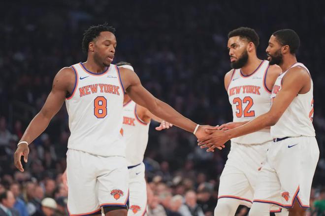 尼克斯VS老鹰(1-1平):两队前两场打得难分难解,G2战尼克斯仅以1分之差惜败,系列赛回到同一起跑线。但尼克斯的核心短板已暴露无遗,当家球星布伦森球权占有率高达36.6%,他在霸占大量球权却效率低下,且未能盘活全队,唐斯、阿努诺比、布里奇斯等球星的威胁并未得到真正的展现!此外,布伦森在防守端是球队的短板,需要队友协防,显然这样的打法,上限不会高。尽管尼克斯账面实力占据优势,有实力晋级,但主场丢掉一局,系列赛不会早早结束。如果绿军和尼克斯如愿晋级,两者之间在分区半决赛的战斗更将异常艰苦,骑士坐收渔翁之利。