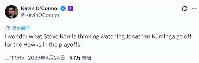 NBA记者凯文·奥康纳在推特上写道:“我很好奇,当科尔看到库明加在老鹰季后赛里大展身手的时候,科尔在想什么。”美媒Legion Hoops发推写道:“科尔竟然真的不让库明加上场,大错特错。”