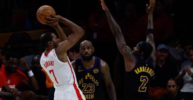 与湖人系列赛G1杜兰特就曾因为髌腱受伤缺阵,火箭也在客场98-107不敌湖人。G2杜兰特完成复出,全场砍下23分6篮板4助攻,但火箭仍以94-101再次负于湖人。