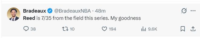 休媒:上半场打完算上谢泼德前两场,他合计35中7,我的天哪。