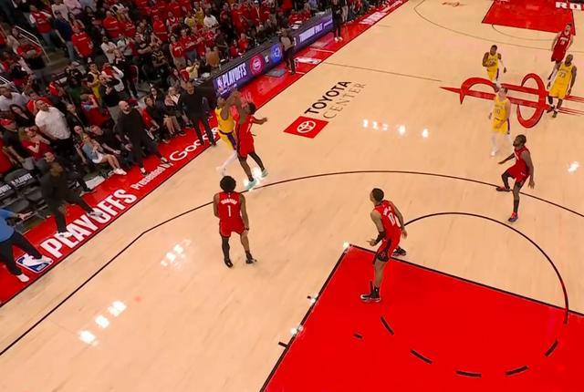 最后25.4秒,火箭后场发球给谢泼德,詹姆斯主动上前领防,这是一个41岁打了接近40分钟的詹姆斯,但谢泼德完全没有摆脱詹姆斯的防守,被詹姆斯身后掏球直接抢断。