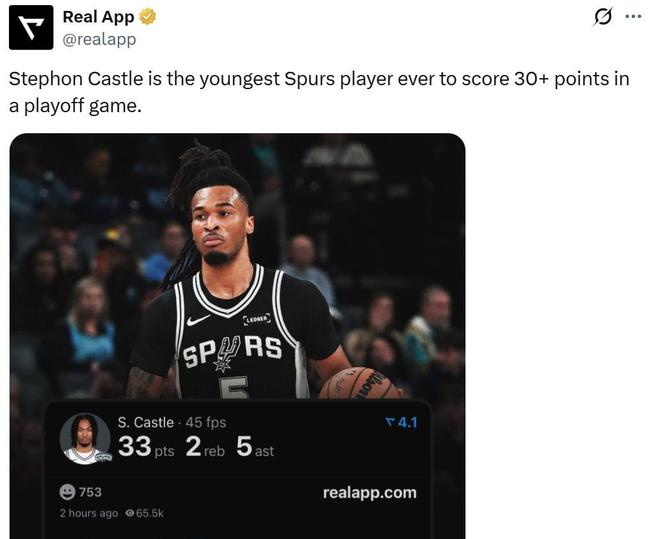 凭借这样的表现,21岁175天的卡斯尔成为马刺队史季后赛拿下30+得分最年轻的球员,也成为新世纪以来第二位在季后赛单场砍下30+的二年级生,第一位是怀特。