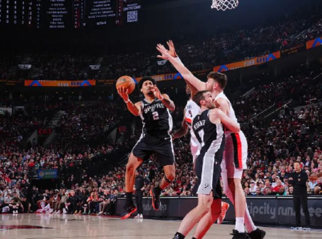 在上一场比赛里,马刺队的核心中锋文班亚马突然受伤,他摔倒之后撞伤了头部,进入了脑震荡保护程序,今天虽然参加了赛前热身,但还是没有出战。马刺队正好借助这个机会锻炼一下没有文班亚马的阵容,开拓者队是不错的演练对象。