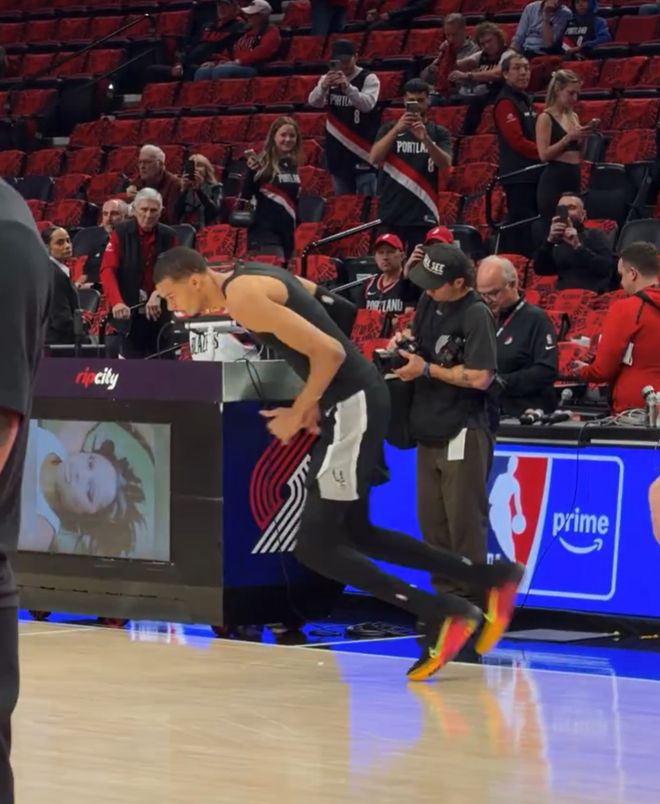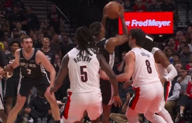 第三节很长一段时间里,马刺是顶不住的,甚至被开拓者拉开了分差。