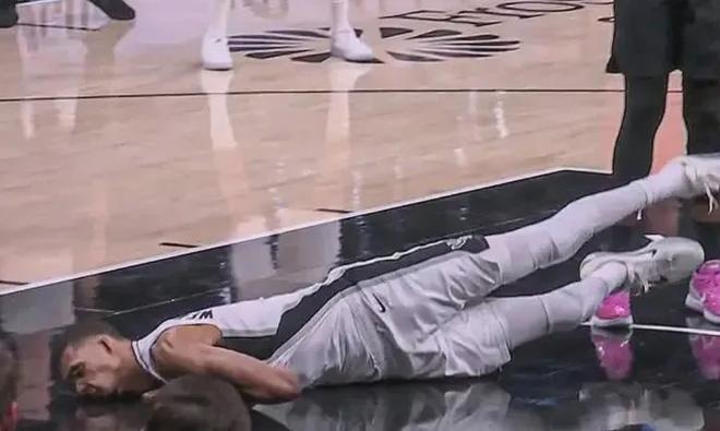 在系列赛G2,文班亚马在一次持球进攻时突然被霍勒迪“撤凳子”,自己摔倒了,头着地,随后一路小跑着回更衣室,直接退出了比赛。