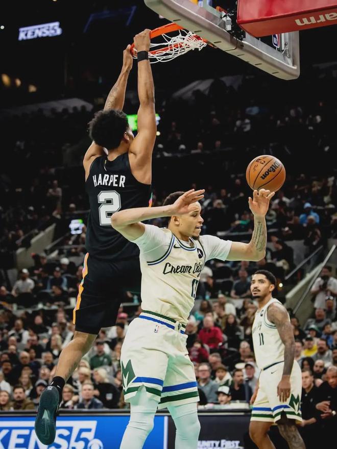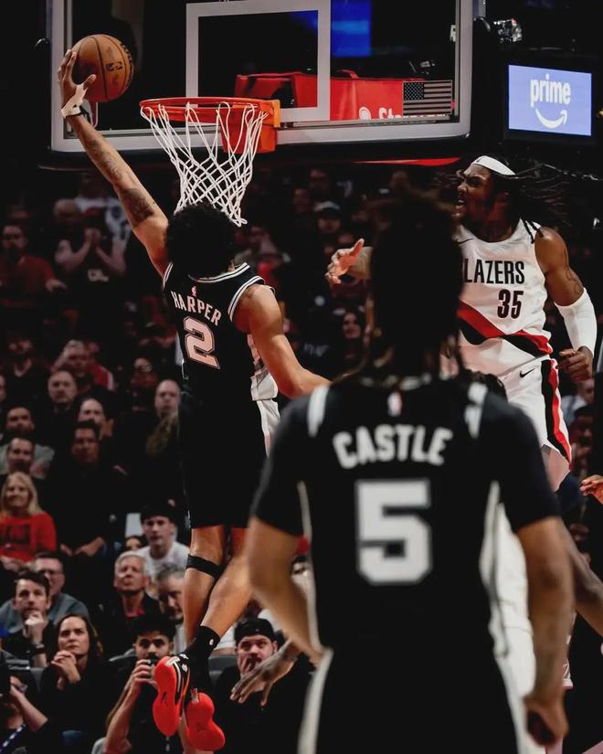 当然,这是因为跟前面几位比起来,哈珀的发挥空间要小得多。且不说马刺有文班这样的绝对核心,光是后场,就有福克斯和卡斯尔两位大哥;而在第六人这条赛道,他身边甚至是联盟最佳替补凯尔登-约翰逊。