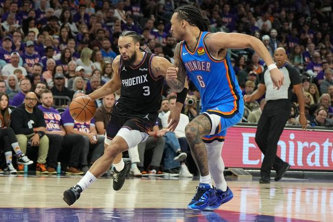易边再战,两队进攻手感依旧低迷,连续两节单节得分未能突破30分。第三节开局太阳全力追分,不断缩小分差,将比分迫近至60-64,仅落后雷霆4分。雷霆随即发力打出7-0的进攻浪潮,重新拉开场上分差。比赛期间出现突发状况,布克在进攻回合中被多尔特绊倒,随即返回更衣室接受检查,雷霆趁势将领先优势扩大。好在布克很快重返赛场,立刻命中三分带队掀起反扑,帮助太阳将分差缩小至6分。雷霆迅速调整攻防节奏,回敬一波6-0的攻势,重新建立12分领先优势。后续伊戈达罗炸裂暴扣、杰林快攻上篮持续得分,太阳不甘示弱打出8-2的追分浪潮缩小差距,关键时刻亚历山大命中中投稳住局面。三节战罢,雷霆单节25-26小幅失分,仍以87-79手握8分领先。