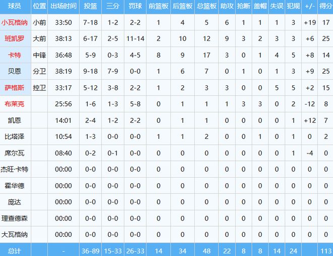 去年休赛期7换1交易来的贝恩,化身东部库里三分9中7砍下25分外加7板;22届状元郎班凯罗尽管进攻效率低下,可命中了锁定胜局的关键三分球,全场投篮17中6得到25分12板9助3断2帽全面数据。