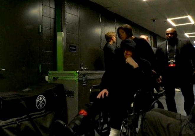 北京时间4月26日,当森林狼首发主力迪文琴佐仅出场79秒就伤退,如今根据ESPN名记Shams Charania报道,迪文琴佐遭遇的是右跟腱撕裂,宣告赛季报销,他已经穿上保护靴坐上轮椅离开场馆。