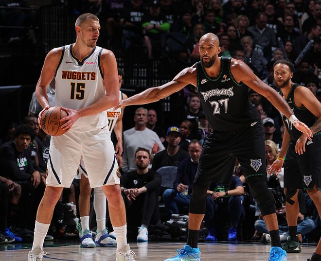 在系列赛前三场比赛,森林狼总分2-1领先。本场掘金缺少沃特森,戈登迎来复出。首节开局仅79秒,森林狼率先内外开花取得5-0领先,但迪文琴佐随后无对抗受伤,遭遇右跟腱撕裂退赛宣告赛季报销。约基奇攻传结合率领掘金逐步反超比分,双方持续紧咬比分拉锯战缠斗,首节约基奇9中5贡献全能10+5+4+1,爱德华兹被限制6中1仅得到3分。双方首节进攻效率均不高,掘金26中10,其中三分6中1,森林狼22中9,其中三分6中3,首节比赛结束掘金23-22领先森林狼。