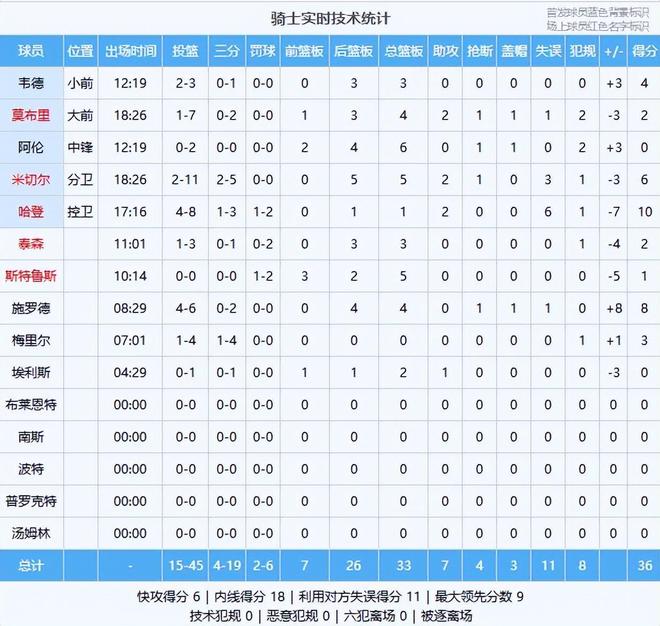 哈登10分1板2助、施罗德8分4板、米切尔6分5板2助、韦德4分3板、梅里尔3分、莫布里2分4板1助、泰森2分3板、斯特鲁斯1分5板、阿伦6板、埃利斯2板1助