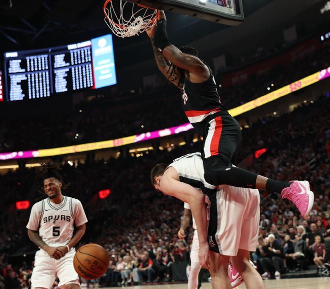 作为本赛季名副其实的强队克星,开拓者在第二场季后赛客场掀翻马刺,夺走了主场优势,不过在自己的首个主场比赛中,没有把握住文班亚马缺阵的机会,让卡斯尔和哈珀两名年轻的后卫打出了超强的个人表现,最终主场饮恨。