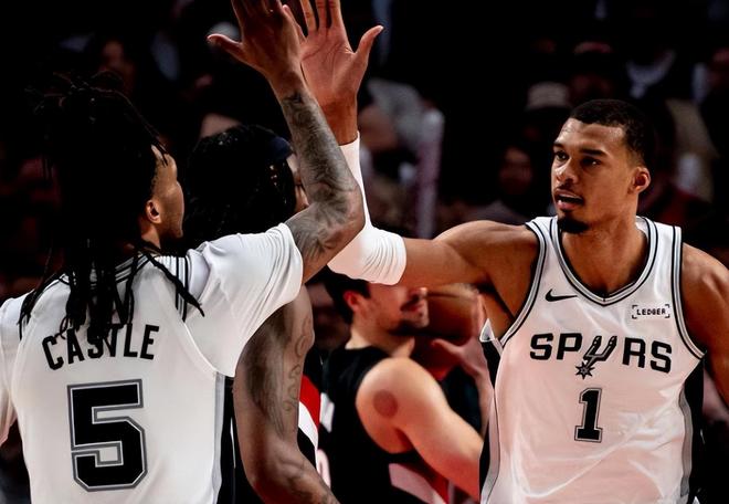 我们把视线转移到马刺和开拓者的系列赛,马刺第二节18-33被打爆,下半场回来在文班亚马、福克斯的带领下后来居上,第三节和第四节合计拿到了73分,最终以114-93逆转开拓者,大比分3-1领先拿到了赛点。复出的文班亚马17投9中,8罚8中拿到了27分12篮板,福克斯17投11中,三分球8投4中,4罚2中拿到了28分6篮板7助攻。开拓者方面亨德森7投0中没有得分,克林根10投仅2中,阿夫迪亚14投8中,9罚8中空砍了26分7篮板3助攻,霍勒迪20分6篮板。开拓者相比于马刺并不被看好晋级,现在的大比分也是实力的体现。