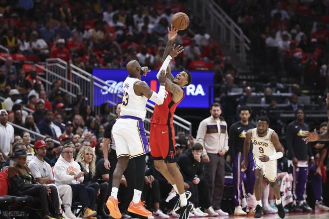 北京时间4月27日,NBA季后赛迎来火箭与湖人首轮G4战!这轮系列赛前三场比赛,火箭全部输球,G3战末节最后12秒还手握12秒的领先,但是最后湖人抢断+造3分犯规,比赛被拖进加时,最终湖人拿下胜利。那场比赛詹姆斯拿到29分13篮板6助攻3抢断的全能数据,火箭空砍33分16篮板6助攻,阿门也空砍26分11篮板。谢泼德效率糟糕,21中6,防守端被湖人重点针对。本场比赛湖人依旧伤病缠身,东契奇、里夫斯两大后场核心继续缺阵,火箭核心杜兰特也因伤缺席,不过这场比赛杜兰特出现在替补席,打破球队不合的传闻。