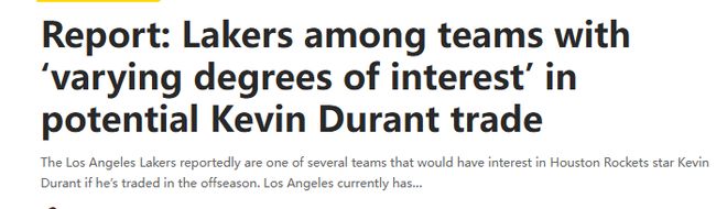 属实。迈克尔-皮纳称,一旦杜兰特被摆上交易货架,包括湖人在内的多支球队都对他抱有不同程度的兴趣。