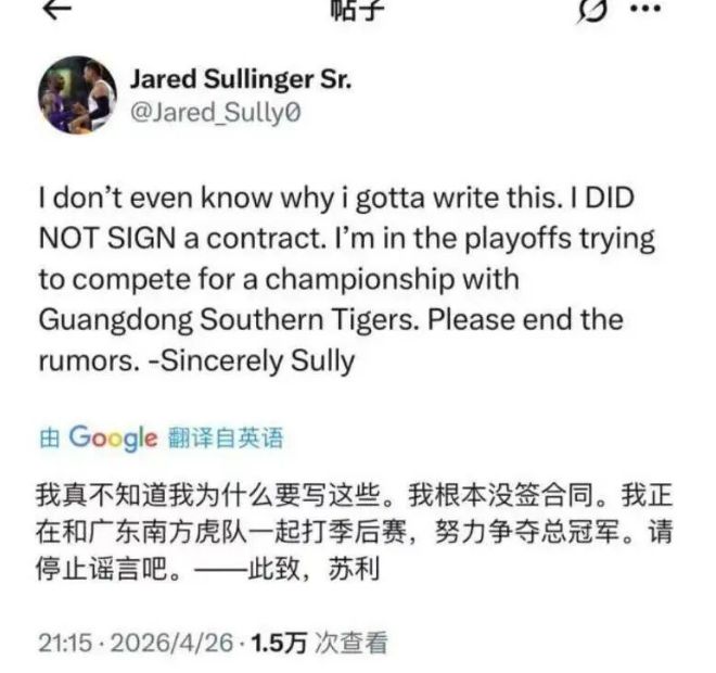 目前广东男篮的人员齐整,就是在冲击着本赛季的最好成绩,但是最近有着很多关于萨林杰的消息,有很多的消息称萨林杰已经是为季后赛结束之后的比赛签订了合约,将会前往波多黎各联赛打球,说萨林杰会消极怠工,担心受伤影响接下来联赛的比赛,但是萨林杰深夜发表了自己的社交媒体,说道自己正在为广东华南虎冲击总冠军的过程当中,自己并没有签约其他的联赛,自己也不想多说什么了,可以看出来萨林杰对于这个事情还是比较重视的,虽然说本赛季萨林杰的状态下滑明显,但是可以给到广东男篮内线一些帮助!