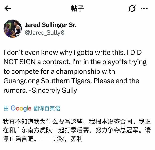 此前萨林杰被传出已经和波多黎各联赛的球队完成签约,在打完CBA后立刻就会前往波多黎各继续打球。不过萨林杰本人站出来多次进行了辟谣。萨林杰表示,自己根本没有和其他球队签新合同,自己正在努力备战,和广东宏远征战季后赛,努力争夺总冠军,呼吁大家停止传播关于他的谣言。辟谣固然重要,但更重要的是萨林杰要用实际行动来告诉大家他没有职业态度的问题,而不是像之前一样在场下看比赛时戴耳机玩手机,在场上摆烂懒得抢篮板和回防。