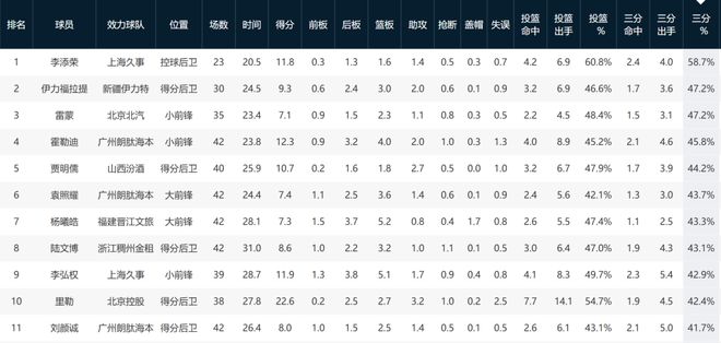 但是刘颜诚很刻苦,他本就是个投手,这些年一直努力精进投篮技艺,这赛季的三分球命中率是职业生涯新高的41.7%,在很长一段时间里排名联盟前10,常规赛最后关头才跌到了联盟第11。