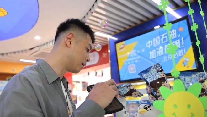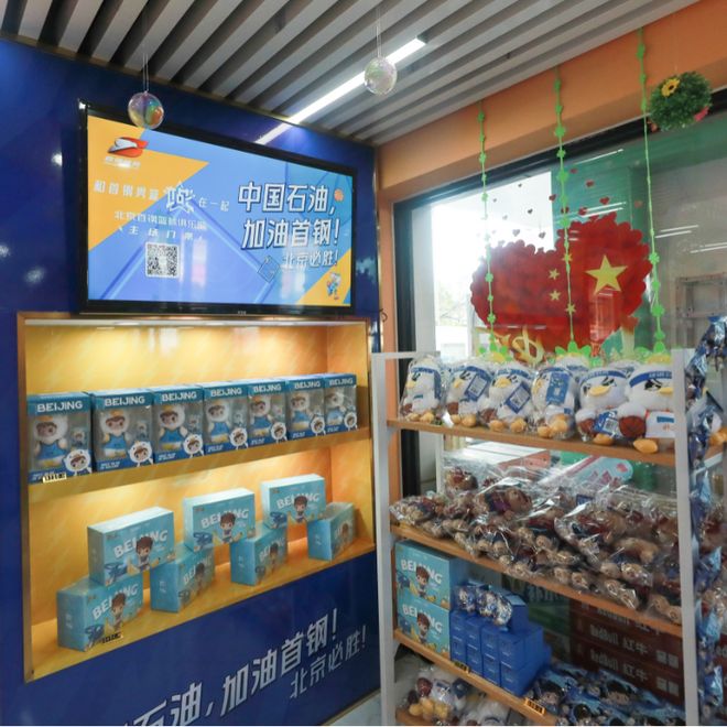 走进加油站,满满的首钢元素就格外吸引眼球!专属定制的北京首钢衍生品专区里,货架整齐摆放,球队周边、玩偶盲盒一应俱全,路过的车主、球迷一眼就能捕捉到熟悉的首钢蓝,把喜欢的衍生品带回家。