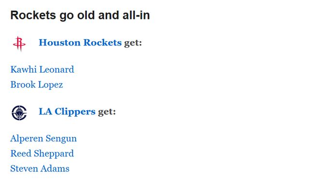 火箭得到:科怀-莱昂纳德、布鲁克-洛佩斯