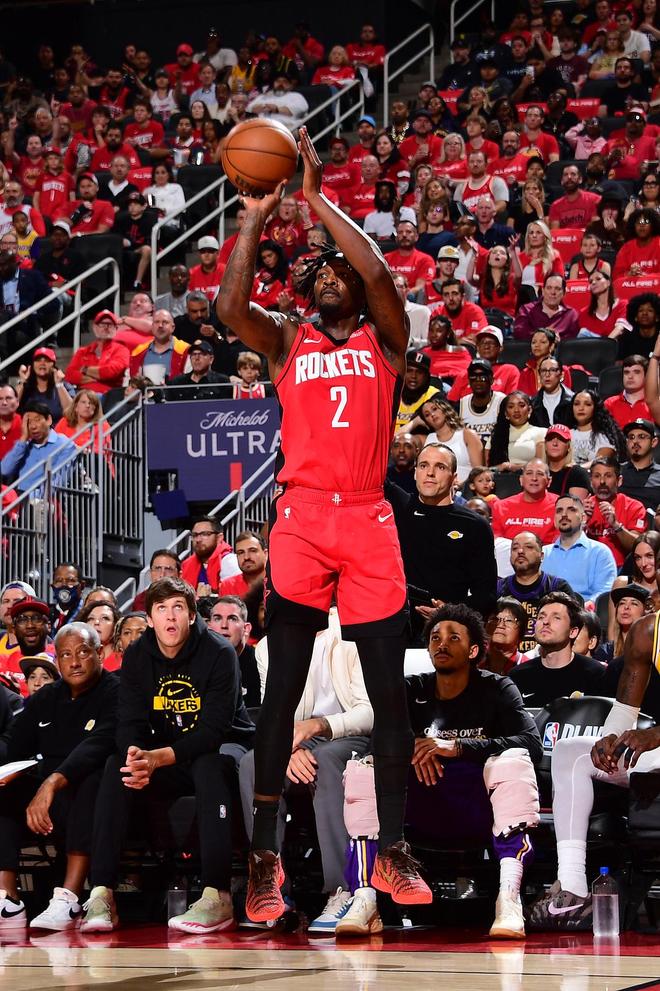 湖人防守重点收缩内线,赌火箭的外线命中率,火箭队出场的球员中,除了申京,其他球员都能命中三分,其中阿门和电风扇各命中2记三分,大大出乎湖人意料。