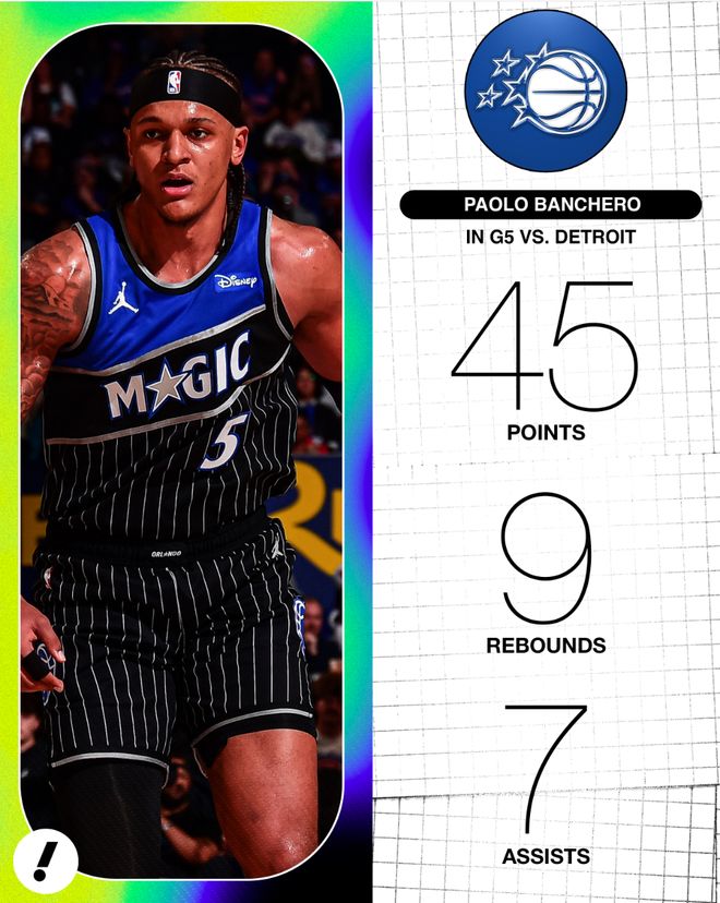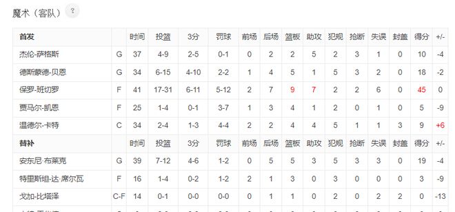 3.魔术季后赛得分榜班凯罗45分队史第二;