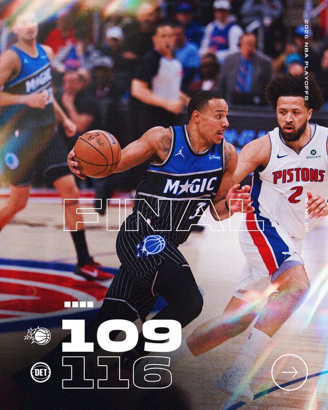 北京时间4月30日,NBA季后赛,活塞116-109击败魔术,大比分扳成2-3。这场比赛首节活塞就领先12分,半场打完魔术缩小到6分,第三节打完活塞又再度领先到10分以上,末节CC帮助活塞稳住局势。