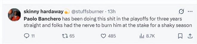 魔术球迷:班凯罗已经连续三年进入季后赛且发挥出色,而外界居然用他一场表现不佳的季后赛就将他贬的一文不值。