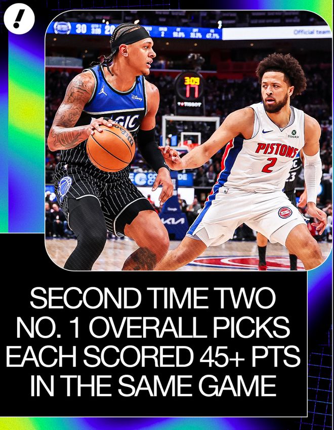 这场比赛班凯罗与坎宁安都拿到45分,所有两人一同创造多项纪录: