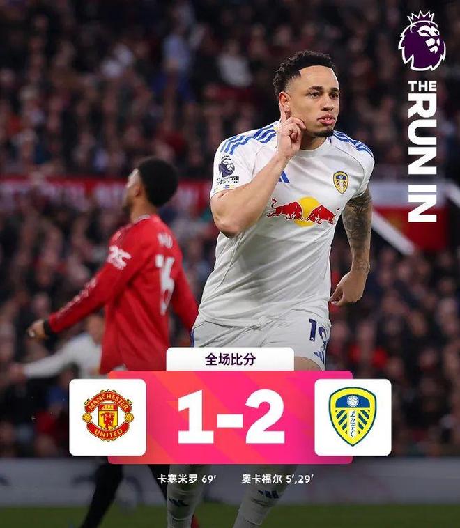 此后曼联倾尽全力组织猛攻,试图抹平差距,但利兹联防线众志成城,多次化解威胁射门,甚至由替补登场的哈里森完成一次极具威胁的单刀反击,只差毫厘未能扩大战果。终场哨响,比分定格在1-2,曼联主场饮恨,卡里克主场不败金身告破,欧冠资格前景蒙上浓重阴影。