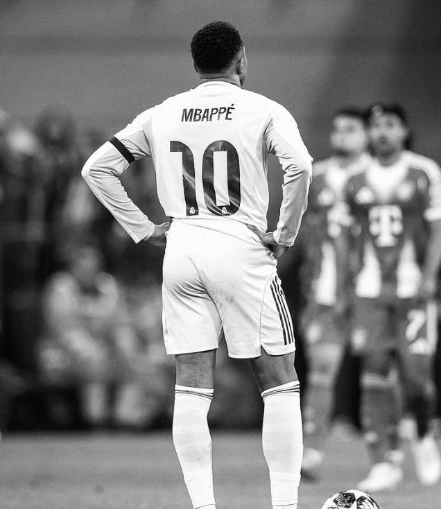 这位在慕尼黑打进第三球的法国老哥,还特意给这篇帖子配上了一张极具氛围感的黑白照片。照片里,正是他在那场皇马告别欧冠八强战中的落寞背影。