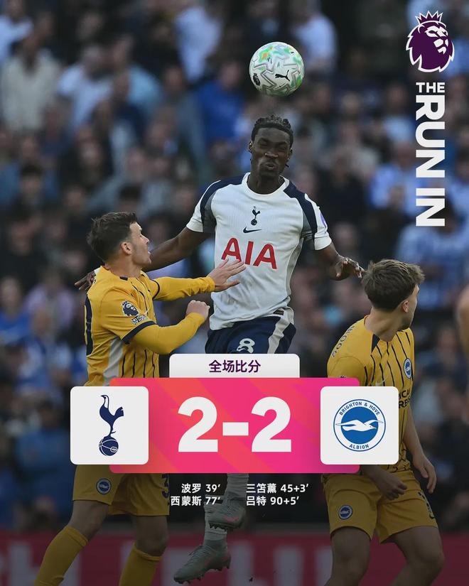 英超保级战的历史性耻辱,在补时哨响那一刻被彻底钉入白鹿巷的夜空。北京时间4月19日凌晨,热刺主场2-2遭布莱顿压哨绝平,联赛连续15轮不胜,一举刷新英超“BIG6”球队新世纪最长不胜纪录。这支曾经跻身欧冠决赛的北伦敦势力,如今以第18名的位次深陷降级区,豪门标签正被自己亲手撕碎。