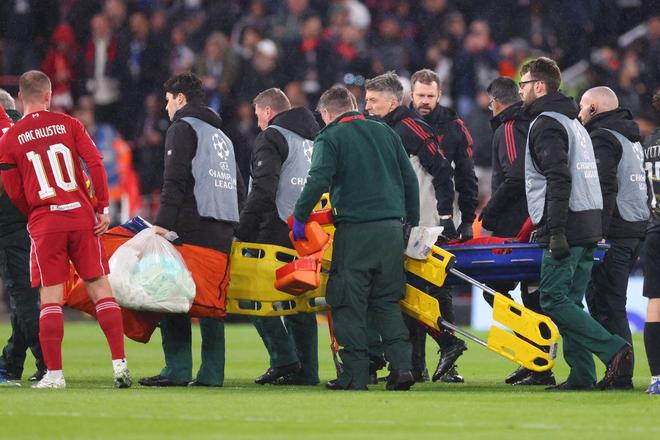 「球员描述它像一道闪电,仿佛被人铲倒。」法国运动医学专家尼古拉·博德里耶这样形容雨果·埃基蒂克的受伤瞬间。23岁的利物浦前锋在欧冠对阵巴黎圣日耳曼的比赛中无对抗倒地,可能面临9个月停赛——他的世界杯梦想,大概率就此终结。