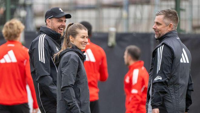 2023年,她成为德甲历史上首位进入一线队教练组的女性——注意,是在全男性后台团队里。此后她带过U19梯队,执教过德国女足青年队,本赛季作为助理教练全程参与一线队工作。当主帅Steffen Baumgart下课,她按顺位接班,链条完整。