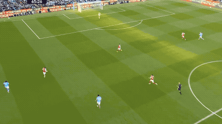 第66分钟,曼城打出快速进攻,奥莱利传球,罗德里一脚踢空,哈兰德抢在加布里埃尔之前,将球打进。