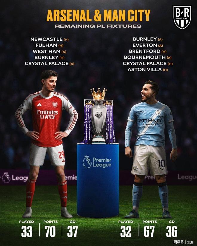 从未来赛程来看,阿森纳的最后5个对手除了保级的西汉姆联之外,都无欲无求,曼城则需要面对力争欧战资格的布伦特福德、伯恩茅斯和维拉,难度更大。