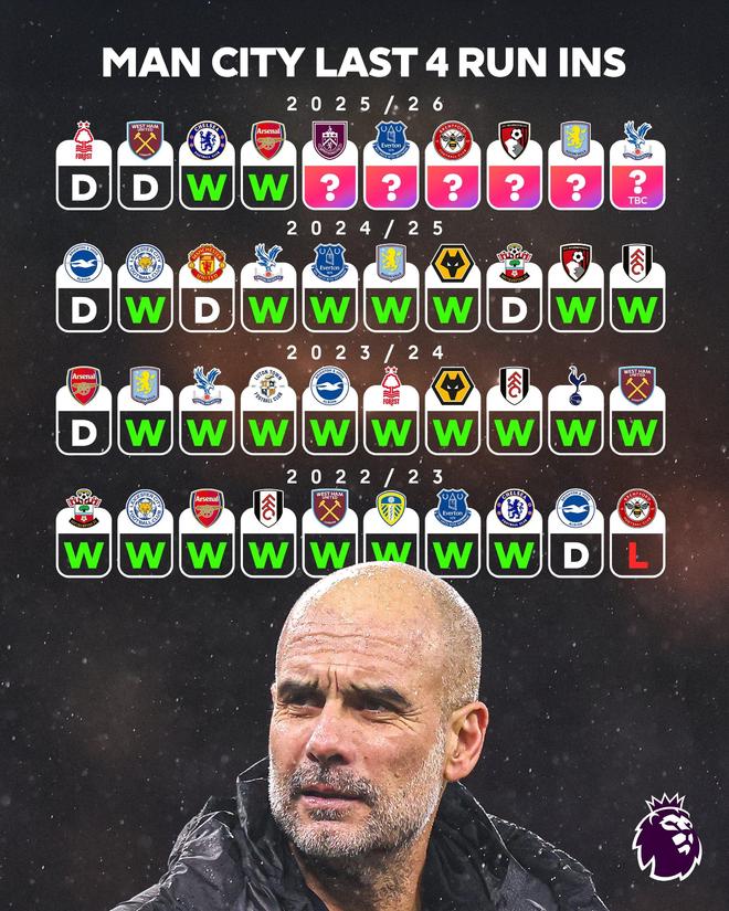 北京时间4月20日,在本赛季英超争冠进入白热化阶段的情况下,英超官方统计出了阿森纳和曼城近4个赛季联赛最后10轮的表现,瓜迪奥拉的球队34战仅1负。