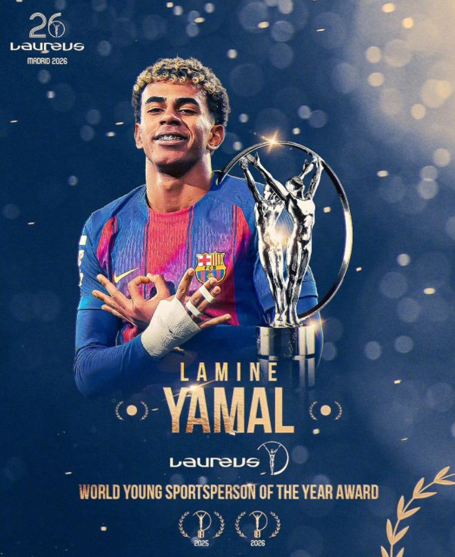 劳伦斯将今日举行颁奖典礼。巴萨前锋亚马尔获得大奖,他拿到了2026年度最佳青年运动员奖。这个奖项是今年首次设立,亚马尔成为首位获奖者。去年的时候,亚马尔获得年度最佳突破奖。亚马尔未来能够获得年度最佳男运动员吗?拭目以待!法甲豪门巴黎圣日耳曼则获得年度最佳团队奖。巴黎圣日耳曼在去年达成6冠王成就,赢得了欧冠、法甲、法国杯、法超杯、欧超杯和洲际杯的冠军,获奖实至名归!