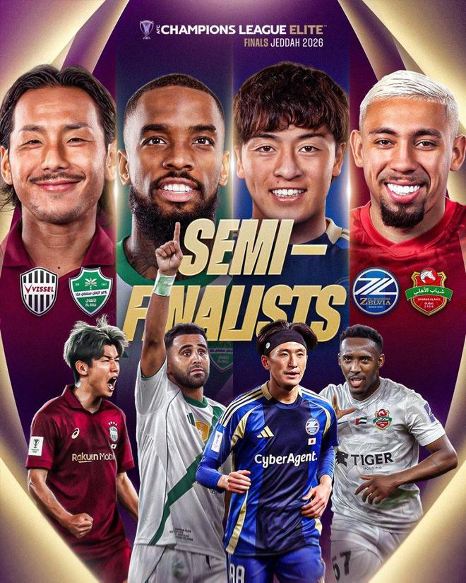 如此一来,本赛季亚冠4强全部出炉。两支日本球队神户胜利船和町田泽维亚将在半决赛分别面对吉达国民和迪拜青年国民。