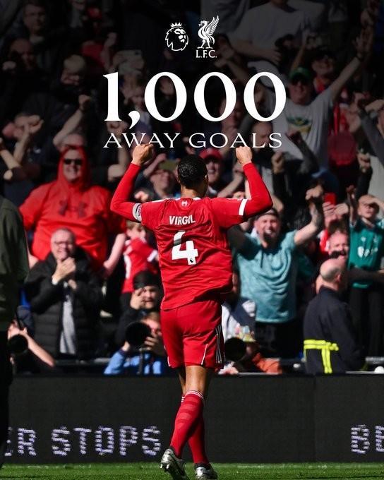 根据统计,范戴克的这个进球是利物浦在英超客场比赛的第1000个进球,在英超成立后,利物浦在客场打进的第一个进球是沃尔特斯于1992年8月25日客场对阵伊普斯维奇镇的比赛中打进的,最终双方2-2战平。
