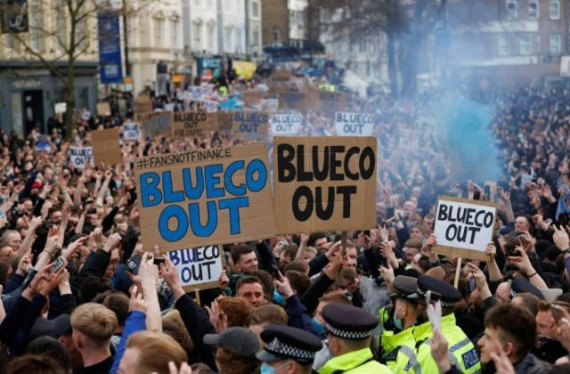 此前的英超第33轮,切尔西主场0比1不敌曼联。至此,切尔西已遭遇英超4连败,各项赛事近7场输掉6场。蓝军拥趸的不满情绪,已经达到峰值。就在那场比赛前,数百名切尔西球迷聚集在斯坦福桥附近,向俱乐部所有者BlueCo财团表达抗议。