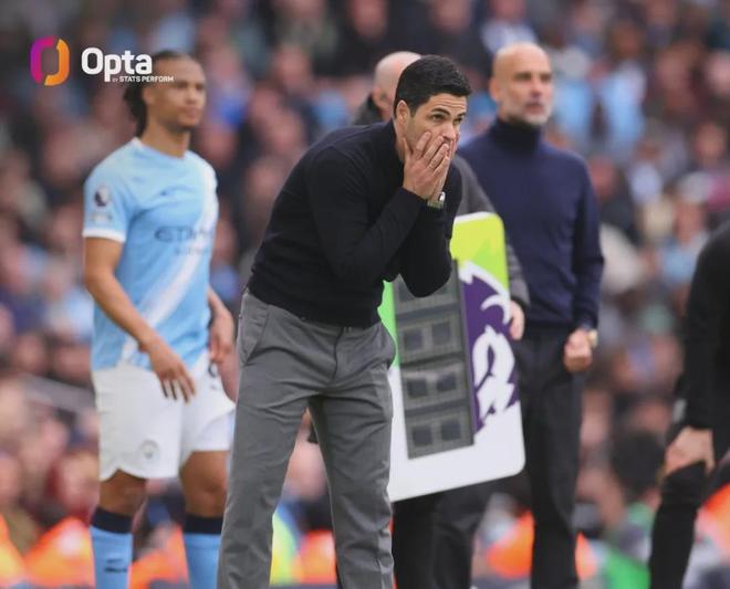 Opta统计,最近9次英超比赛中第一和第二的直接对话,排第一的只赢了1场,战平3场,第二名赢了5场。