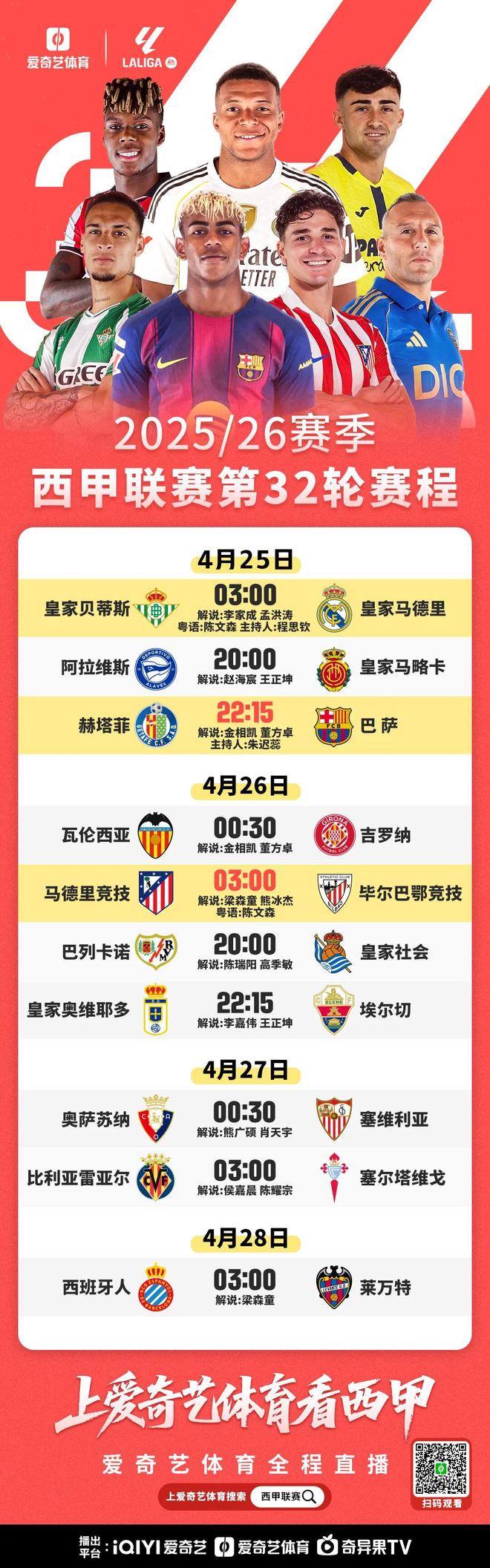 赫塔菲vs巴塞罗那 4月25日(周六)22:15