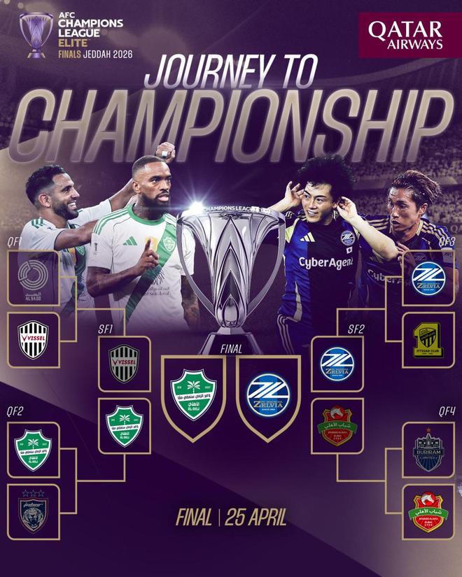 在打进决赛后,町田泽维亚将面对卫冕冠军吉达国民。而本赛季亚冠精英联赛决赛,将于4天后的26日0点15分正式打响。