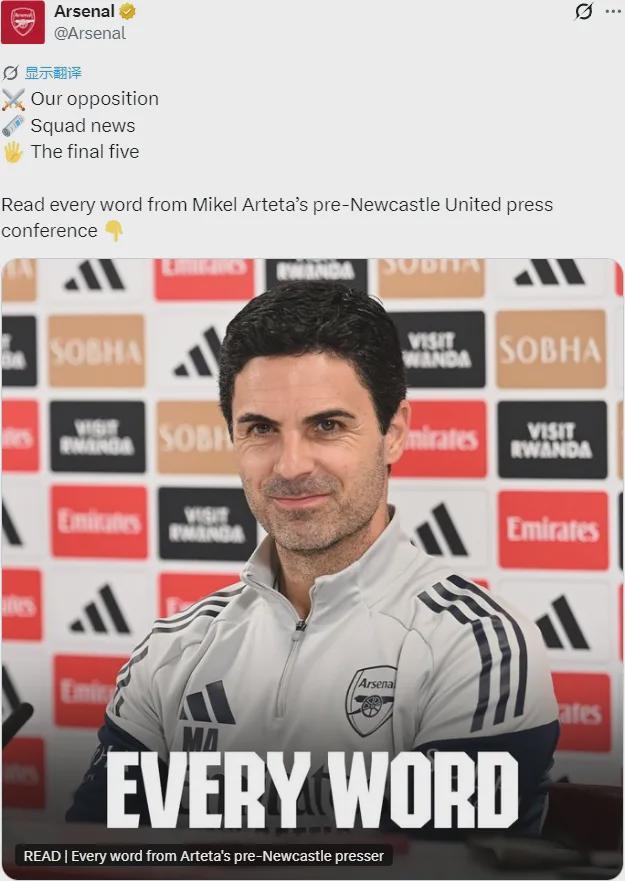 阿尔特塔也确认了这个说法。