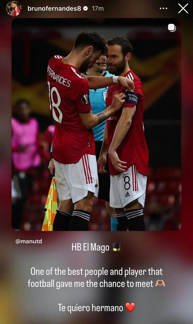B费在社媒致敬马塔:魔术师!足球让我有幸结识的最棒的人之一